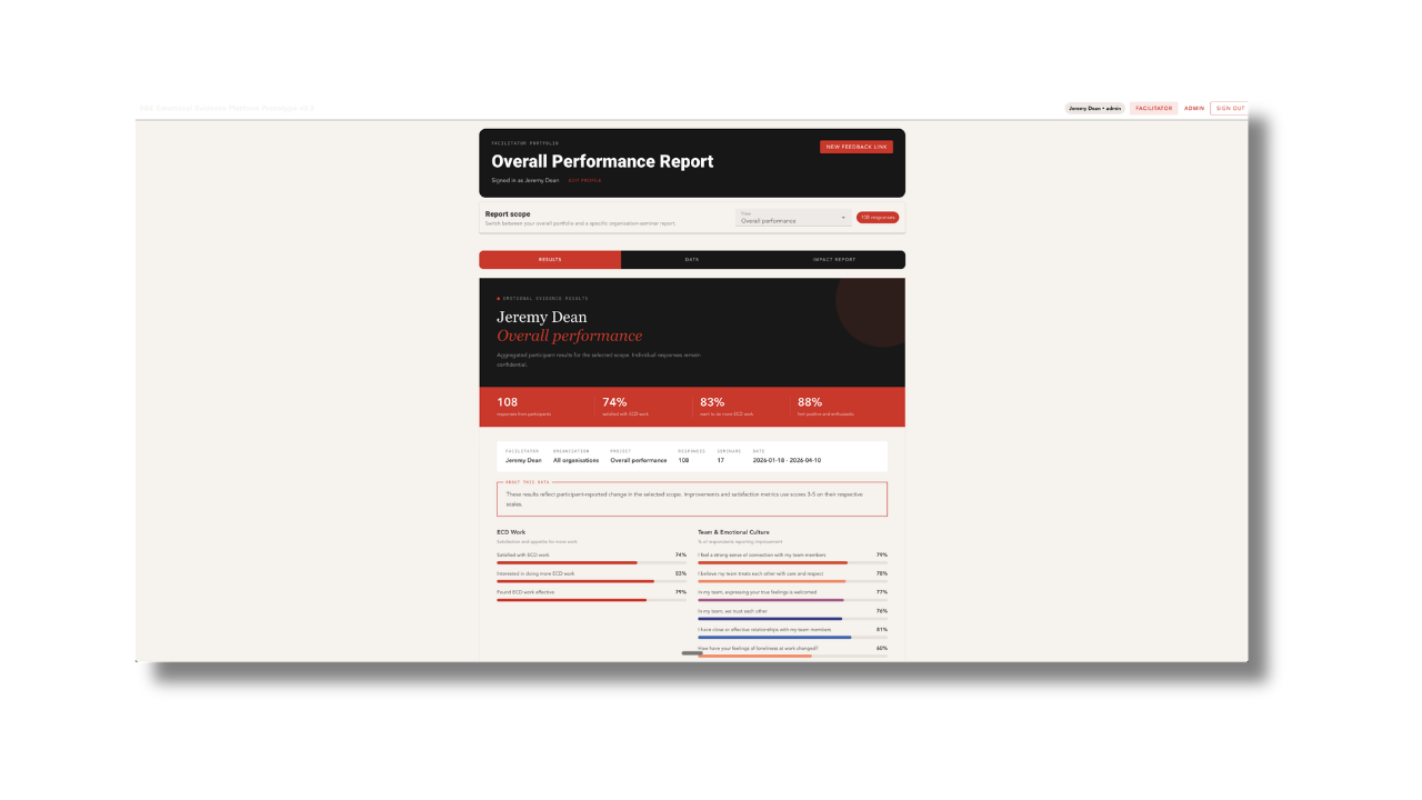 COMING SOON The Emotional Evidence Platform We're building something from this research. A platform that will let practitioners collect impact evidence from their own workshops. Validated scales. Real measurement. It's not ready yet, but course graduates will be among the first to access it when it launches. |